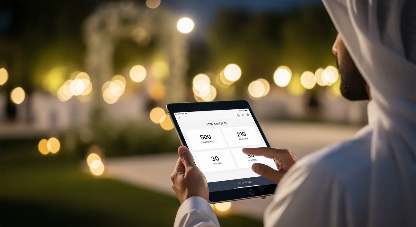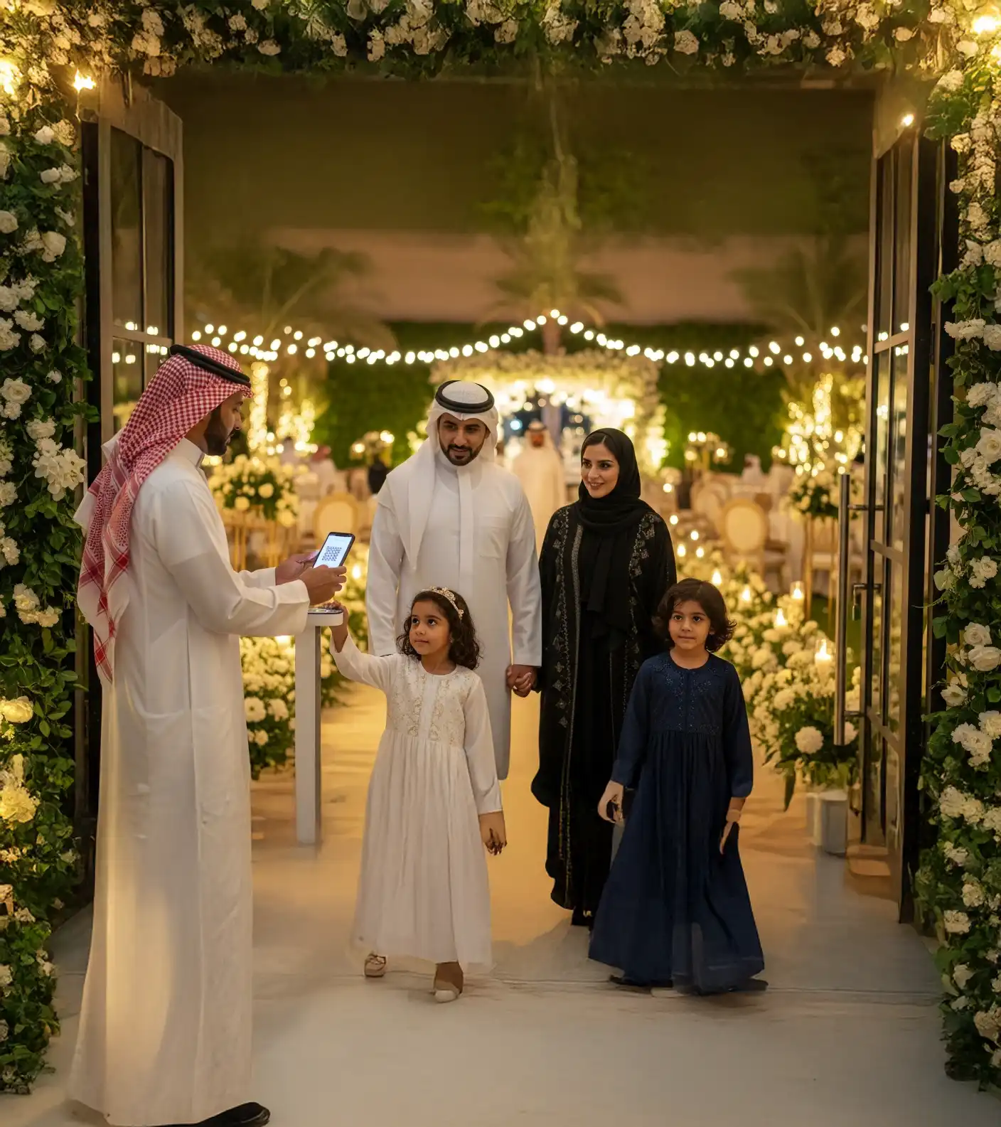كل ضيف توصله رسالة بـ QR كود (باركود) خاص فيه. نرتب لك الدخول عند البوابة، وتعرف مين حضر ومين اعتذر بكل سهولة. ريّح راسك وخلّي التنظيم علينا.